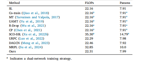 Table 3Comparison complexity between our method and other semi-supervised methods on the F-A4C dataset.