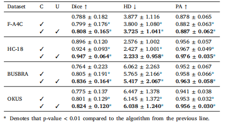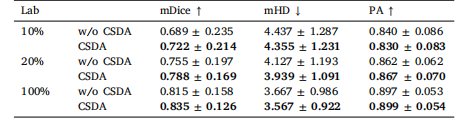 Table 9The experiments of CSDA in fully-supervised segmentation on F-A4C dataset.