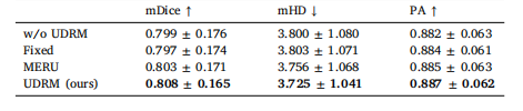 表11 20%标注比例下,未结合CSUDRM的多尺度一致性监督(UMSL)在F-A4C数据集上的消融分析结果。