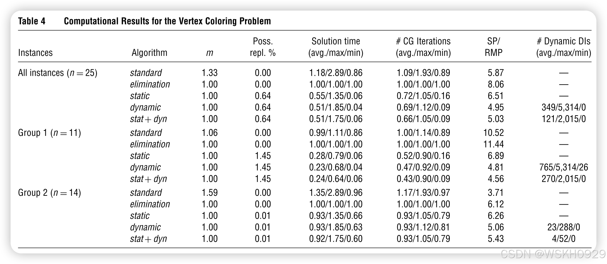 - 行聚合 与行消元 :等价保最优的聚合/消元可显著缩小 RMP 与子问题规模(例如 VC 中邻接包含关系可消元)。