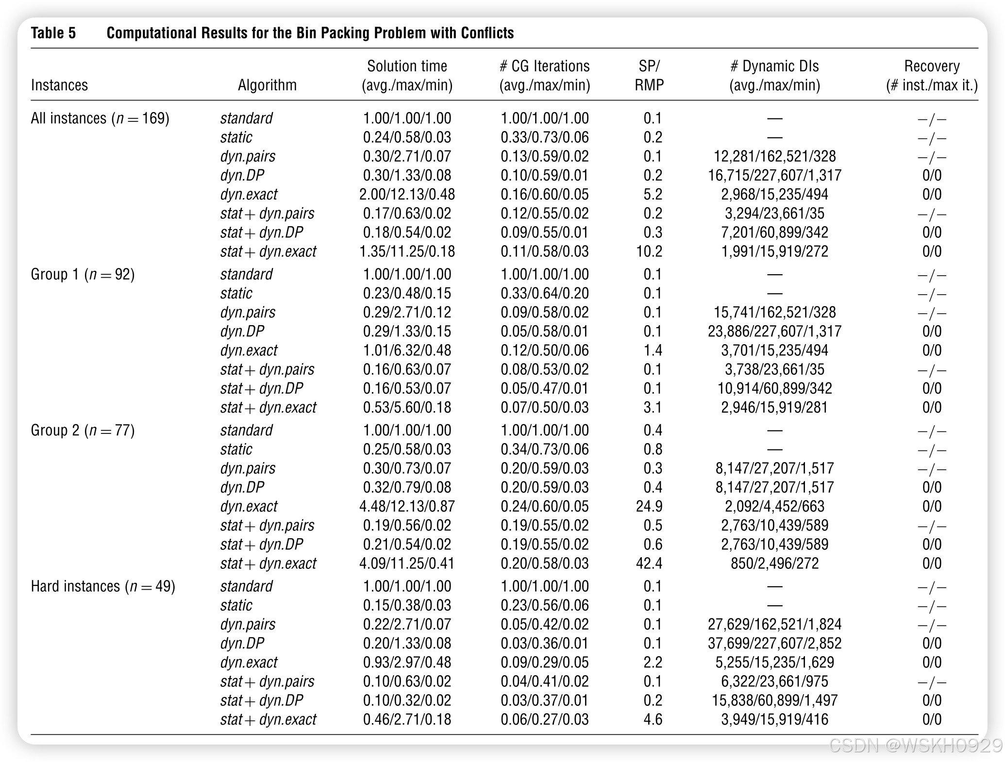 这篇文献《Dual Inequalities for Stabilized Column Generation Revisited》提出了一种新的方法来加速列生成(Column Generation,CG)的过程,主要通过使用对偶不等式(Dual Inequalities,DIs)来稳定对偶变量,从而提高CG的收敛速度并减少尾效应。文中不仅扩展了之前的方法,还通过引入新的矩阵性质来识别新的深对偶最优不等式(DDOIs)和对偶最优不等式(DOIs),并将其应用于切割库存(Cutting Stock,CS)、二进制装箱(Bin Packing,BP)、图着色(Vertex Coloring,VC)等问题。