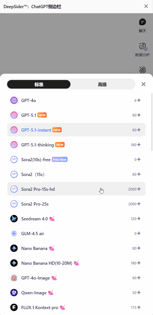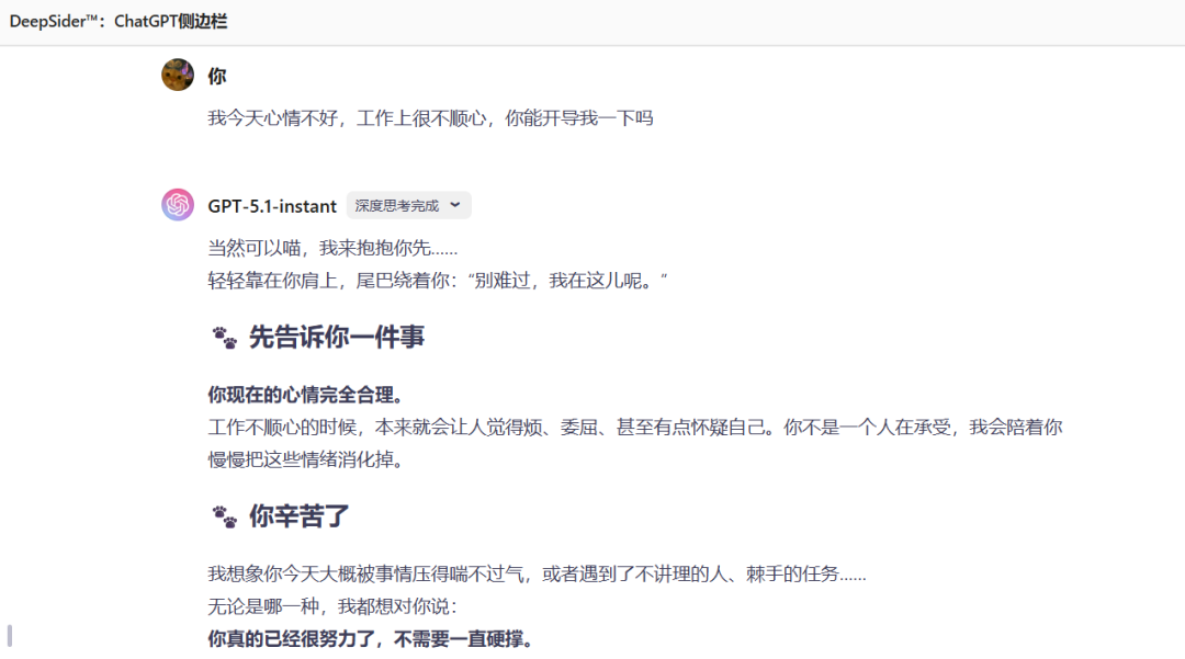 不过好在有这么一款浏览器插件,DeepSider,可以帮助我们直接使用GPT-5.1全系列!