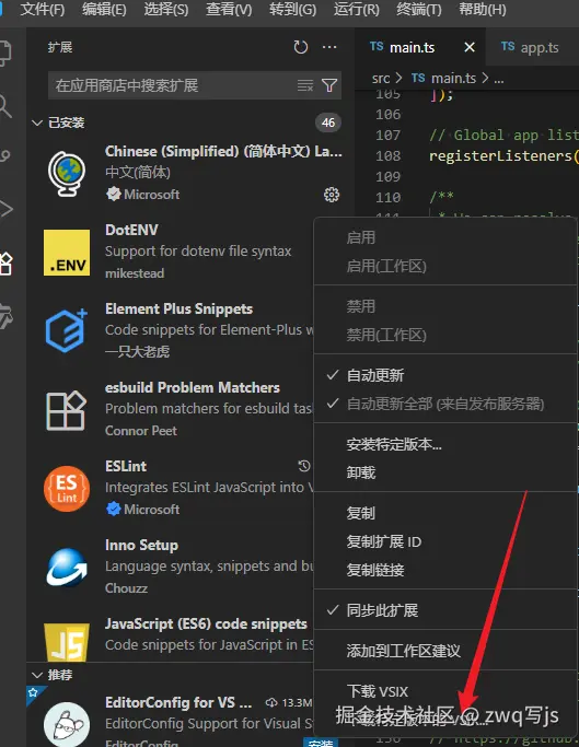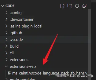 https://ms-ceintl.gallery.vsassets.io/_apis/public/gallery/publisher/MS-CEINTL/extension/vscode-language-pack-zh-hans/1.104.2025091009/assetbyname/Microsoft.VisualStudio.Services.VSIXPackage,并把下载后文件名字改为ms-ceintl.vscode-language-pack-zh-hans.vsix。 - 把下载好的插件放置到
