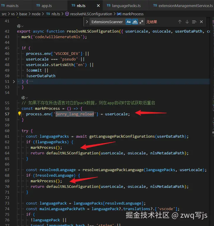 用到的env['jerry_lang-reload']后面会讲解从何而来,此时要记得去导出ExtensionsScanner类;