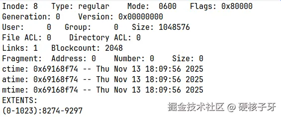 日志超级块,固定使用inode=8,来看看它的信息
