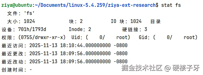 这是ext4文件系统结构,比如在fs目录中创建目录ziya
