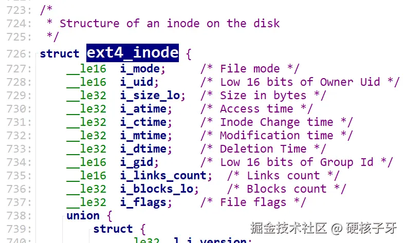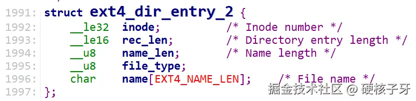 在Linux内核层面,对应的就是ext4_inode、ext4_dir_entry_2