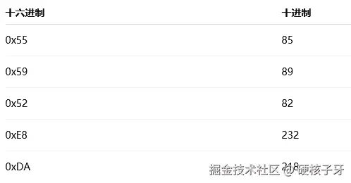 里面有六个数字:0x55、0x59、0x52、0xe8、0xda,转成十进制