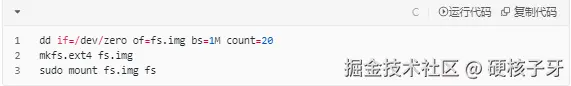 开始实战!创建一个盘fs.img,打上ext4文件系统,挂载到fs目录中,进入fs目录,创建目录ziya