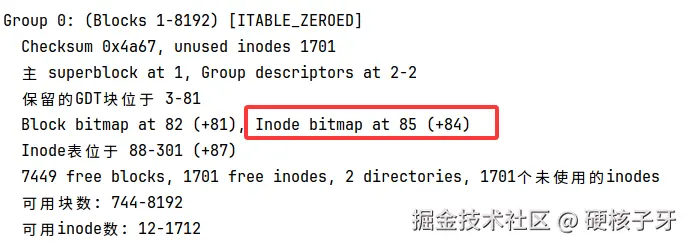 来看看block 5对应的是不是block 85,还真是,inode位图