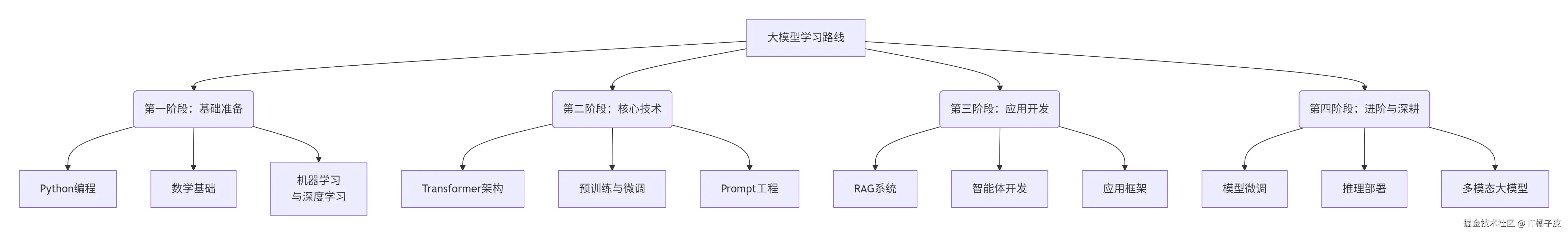 对于普通程序员而言,系统学习大模型技术是一次重要的职业升级。为了帮助你清晰地规划学习路径,我结合多个权威的学习路线,为你梳理出一套从基础到实战的结构化学习方案。
