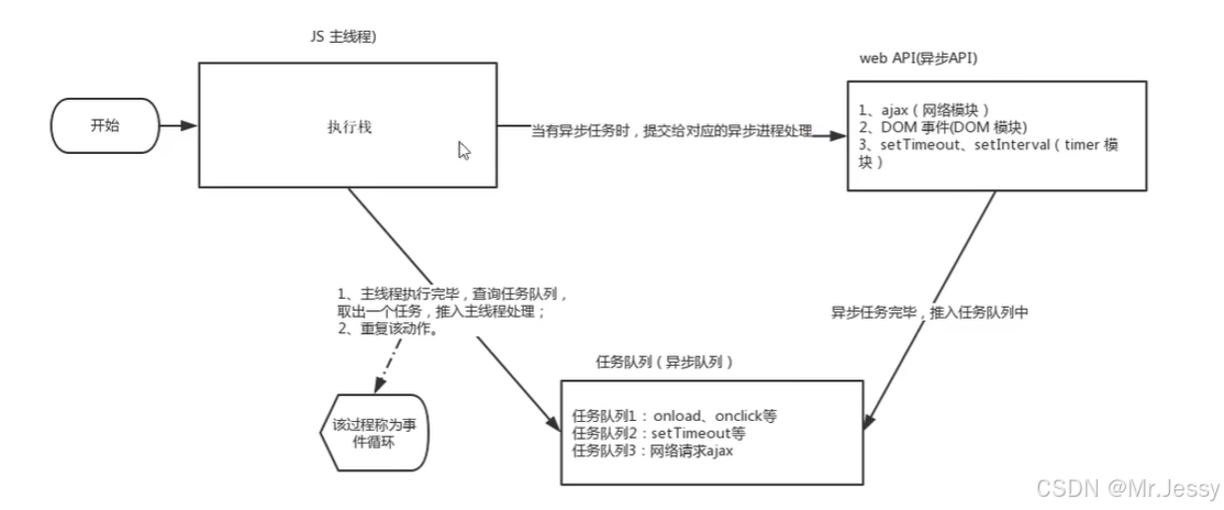 异步任务 :JavaScript的异步指任务不会立即返回结果,而是通过回调函数、Promise等方式在将来某个时间点处理结果。(一般都是需要花费时间的任务)