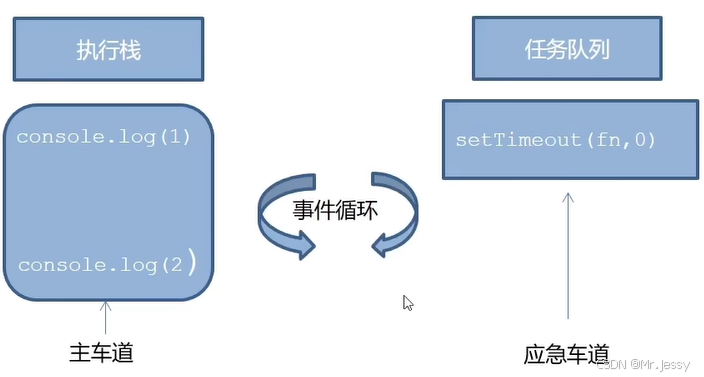 打个比方,执行栈就像高速路上的主车道,所有车辆按顺序行驶在主车道上,如果有车辆出现故障,需要耗时修复,那么它就会被安排停车在应急车道。只有车修好了,才能继续回到主车道行驶。