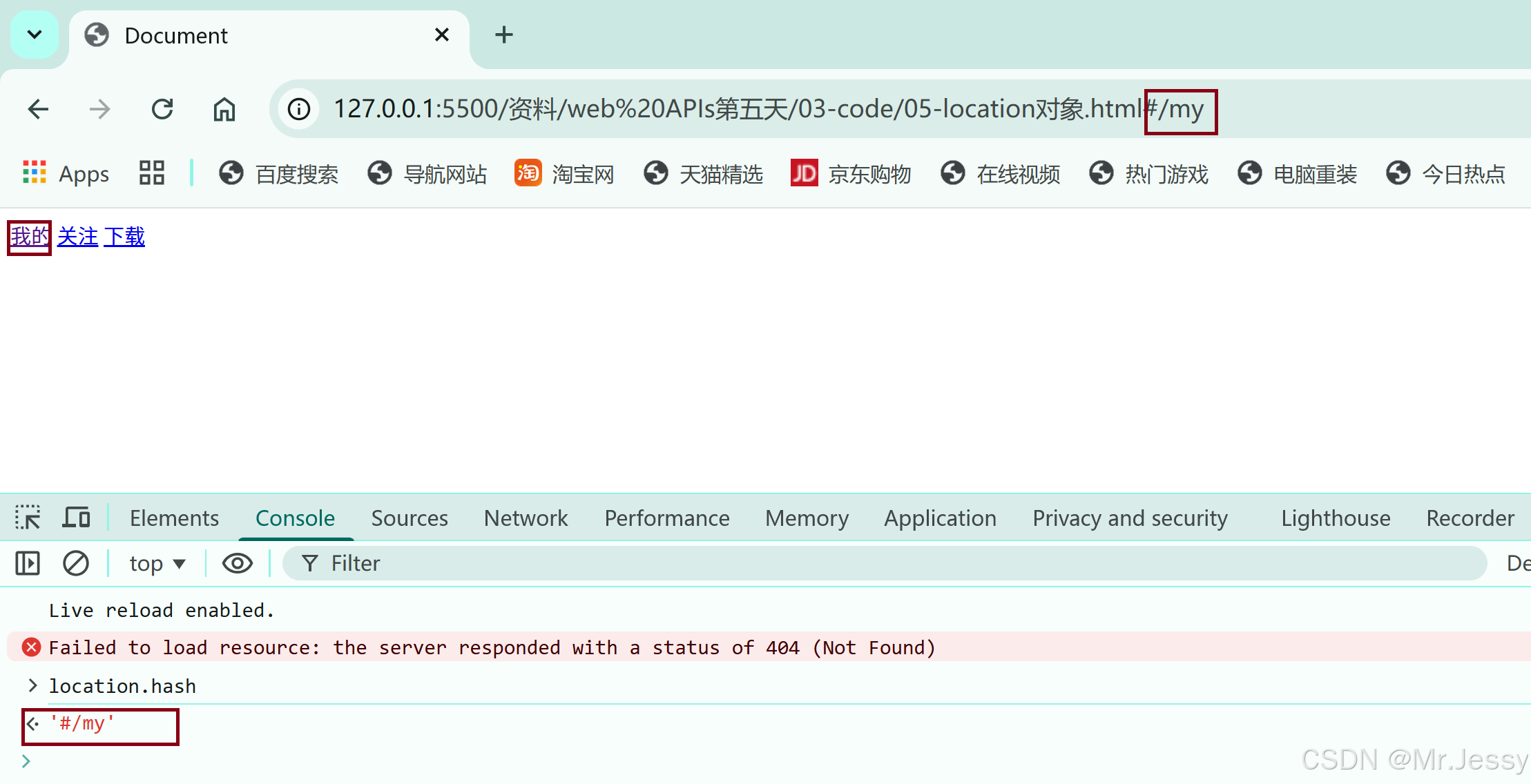 location (地址) 它拆分并保存了 URL 地址的各个组成部分, 它是一个对象。我们可以在控制台查看这个对象的详细信息。