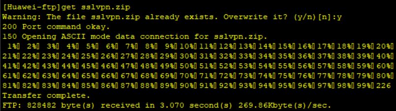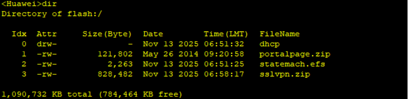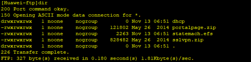 通过dir查询,我们可以看到文件sslvpn文件,也就是我们通过FTP服务获取到的文件,证明我们的实验成功。