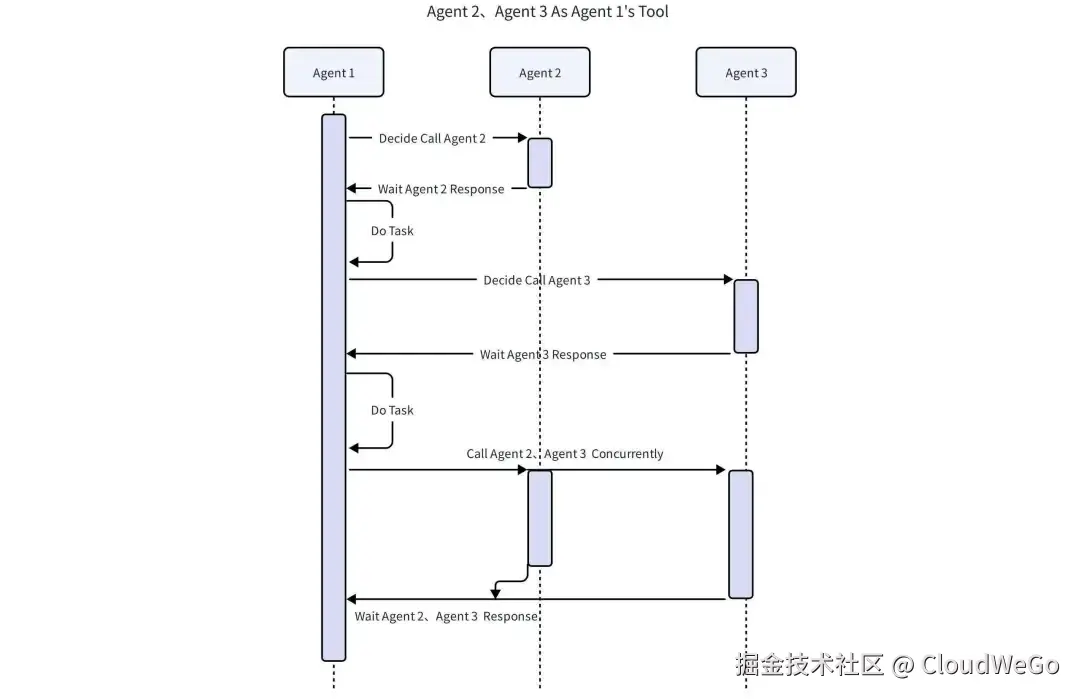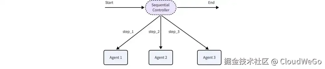 - SequentialAgent:按照配置中提供的顺序,依次执行一系列子 Agent。每个子 Agent 执行完成后,其输出会通过 History 机制传递给下一个子 Agent,形成一个线性的执行链。