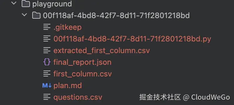 - 运行输出:Excel Agent 输入的附件、运行的中间产物与最终结果都会放置在工作路径下: