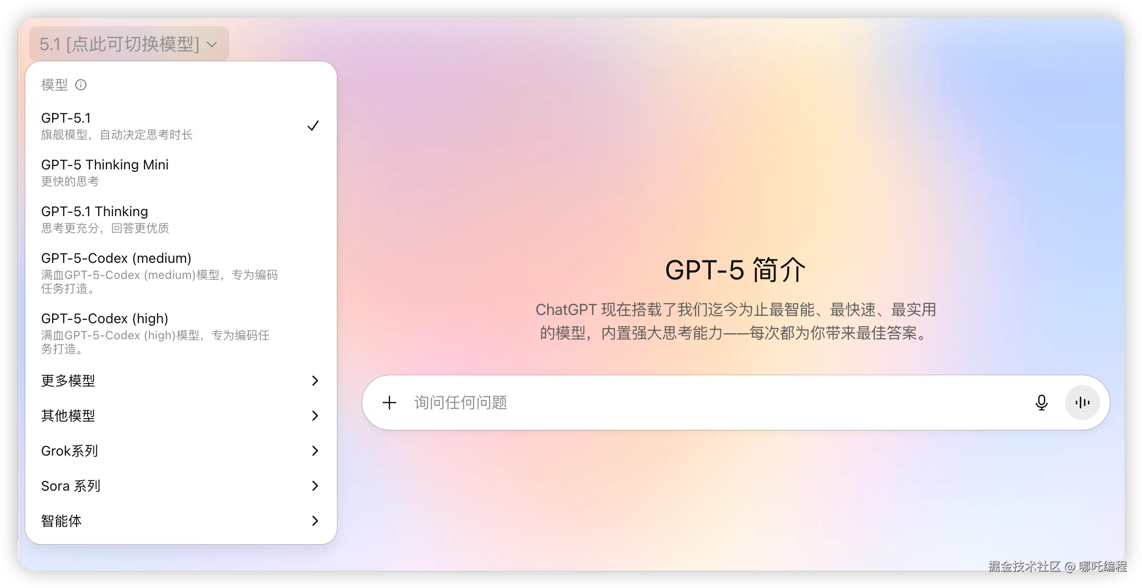 对于大多数人:打开 ChatGPT 就是在用 GPT-5.1,不需要任何额外操作。