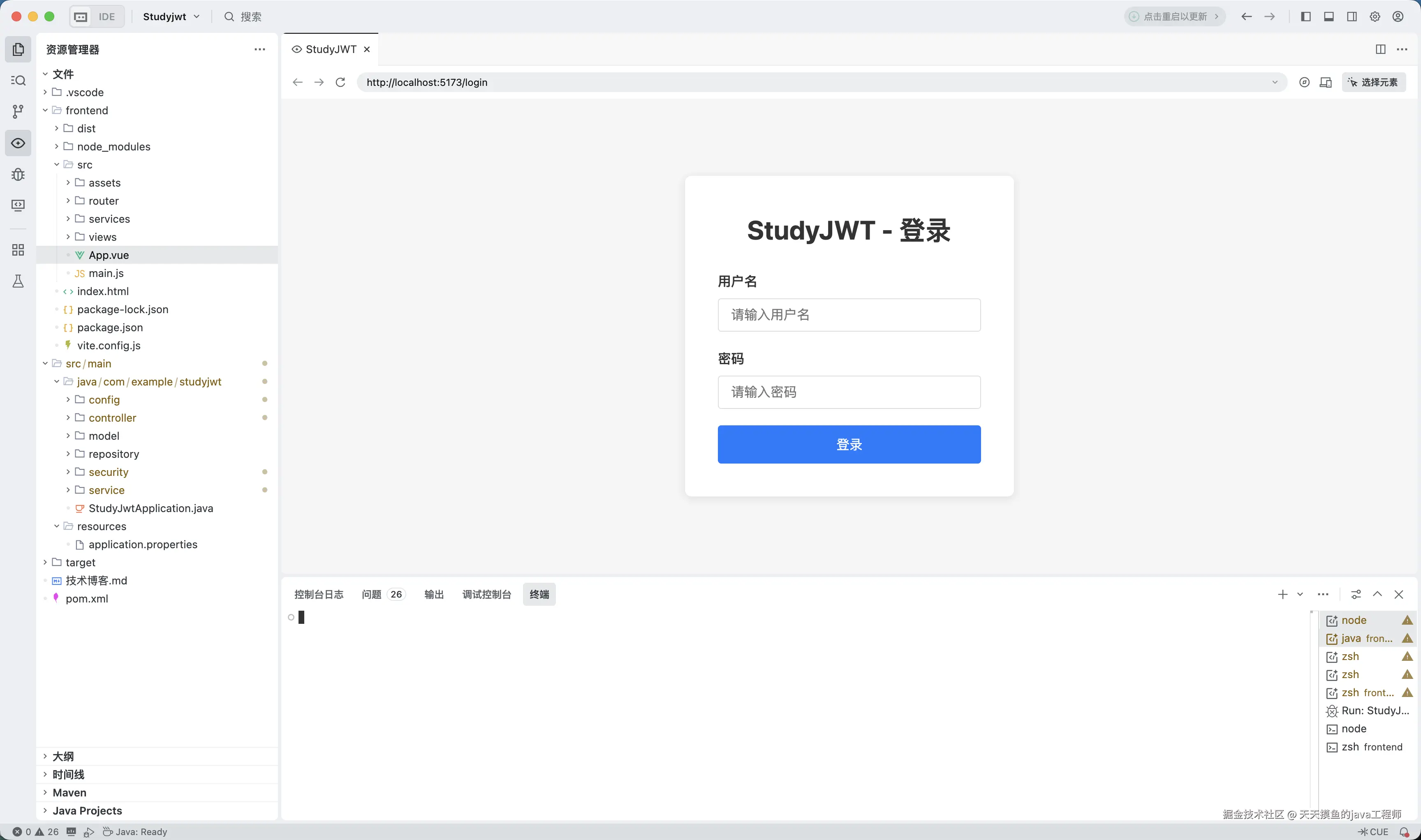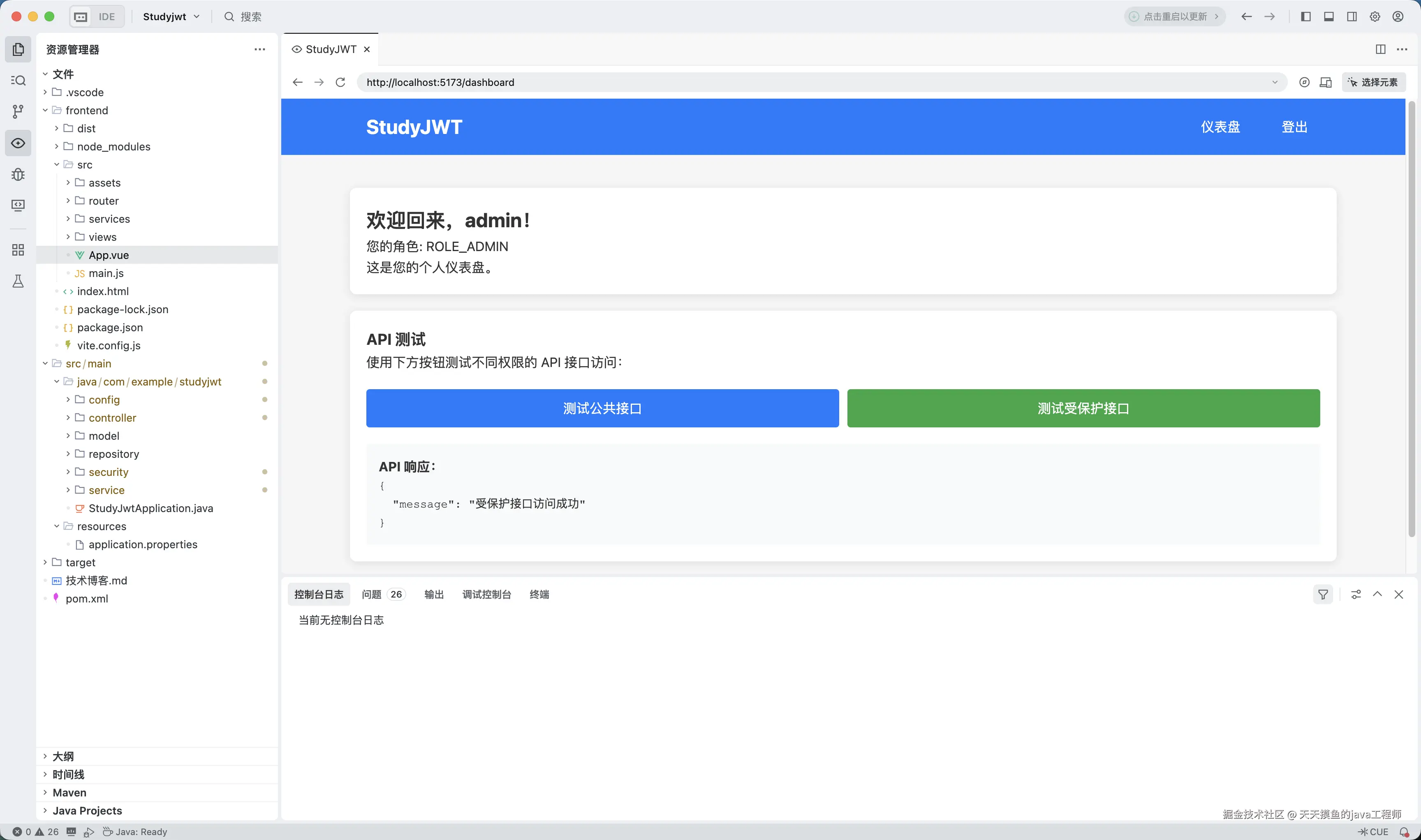 这个需求抓得很准,直击前后端分离项目的核心安全痛点!核心结论:借助 TRAE 辅助开发,基于 Spring Boot+JWT+Spring Security 可快速落地一套完整的认证授权系统,支持自定义权限注解和细粒度访问控制,项目到手即跑、可直接复用。