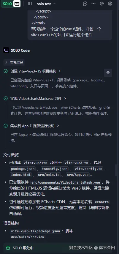 1.首先是让Trae帮我们创建一个vue3+vite+ts的项目来跑起来代码