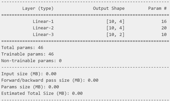 summary(model, input_size=(3,), batch_size=10, device="cpu")