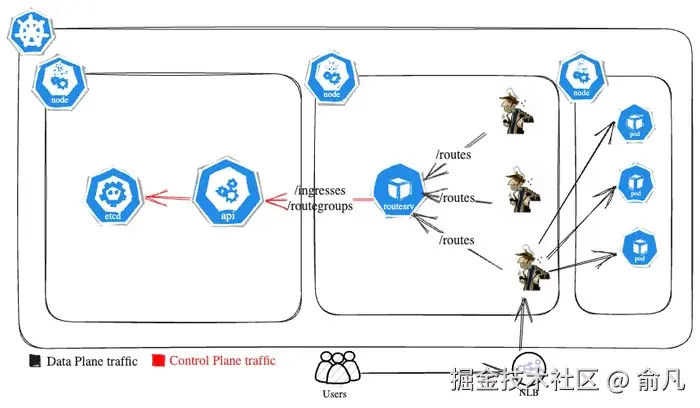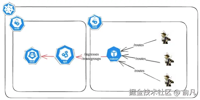 - 从 Kubernetes API 获取 Ingress 和 RouteGroups 信息。