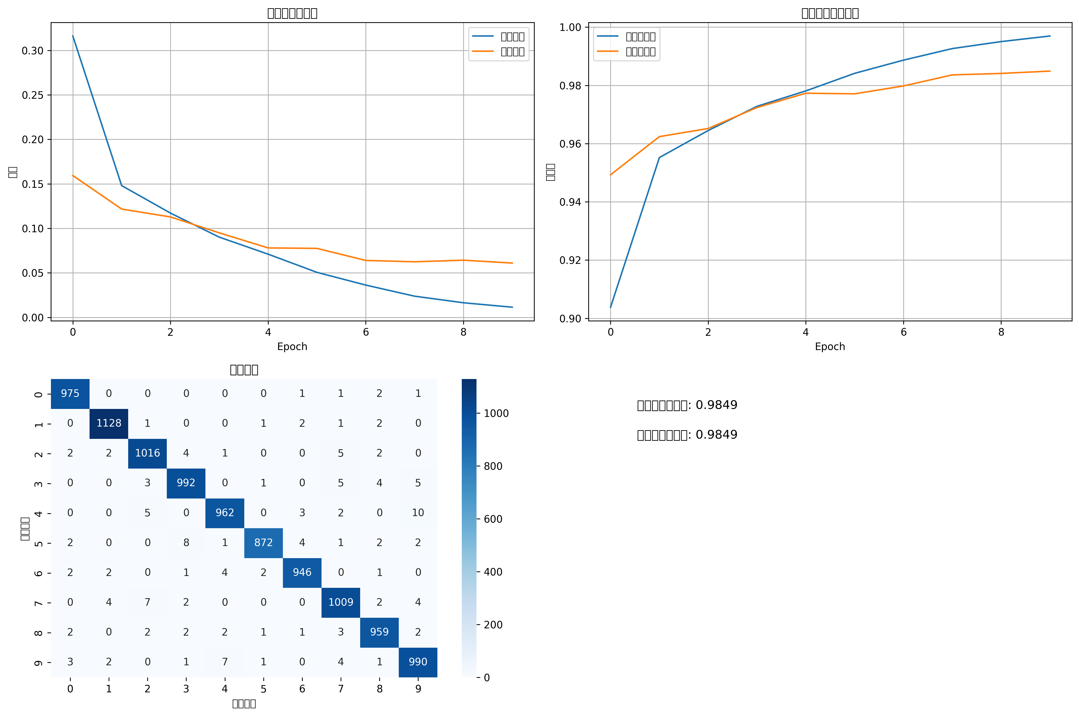 ax4.text(0.1, 0.9, f'最终测试准确率: {val_accuracies[-1]:.4f}',
