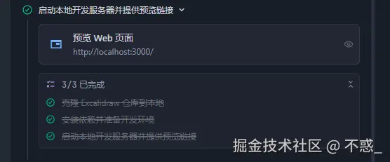 5. 验证交付,监控启动输出,检测到本地地址后(例如 http://localhost:3000/),将其作为最终交付结果并提示你打开验证。不是看起来跑了,而是确实能访问能用。