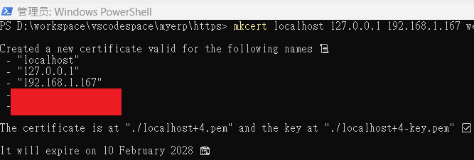 mkcert localhost 127.0.0.1 192.168.1.167 weberp.abc.com abc.com