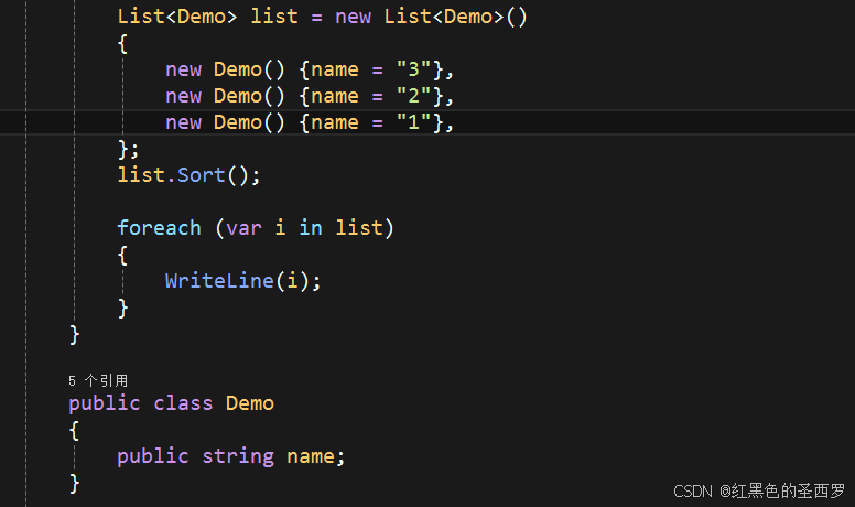 可以看到,传的是一个Demo类型的对象,但是直接使用Sort方法会报错,提示"未能比较数组中的两个元素,必须至少有一个对象实现IComparable"