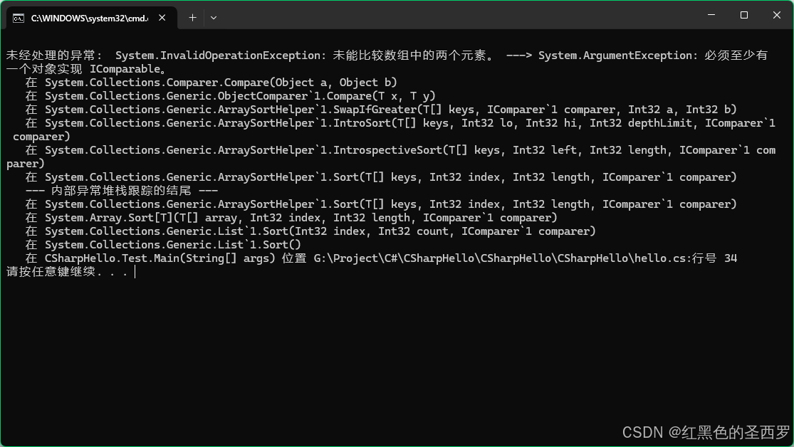 即比较的最终执行是判断比较的两个对象是否实现了IComparable接口,而传入的Demo类型并没有实现这个接口,所以最终报错