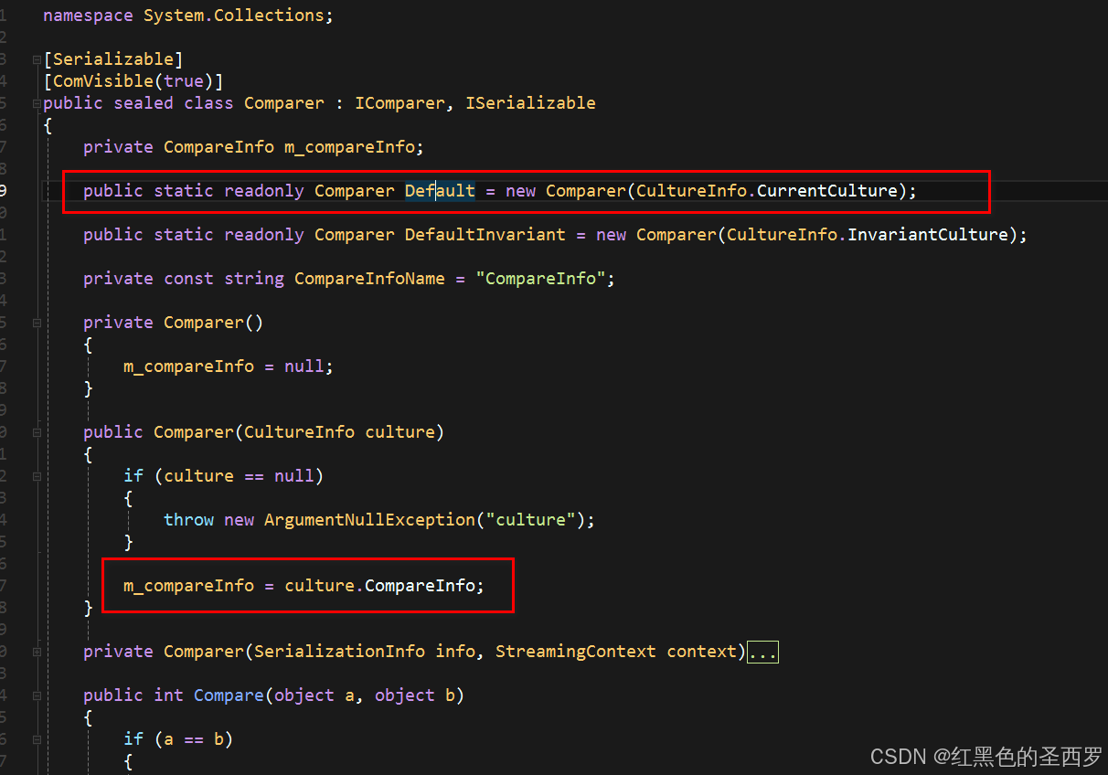 注意此时的comparer因为是null,所以给了一个Comparer.Default