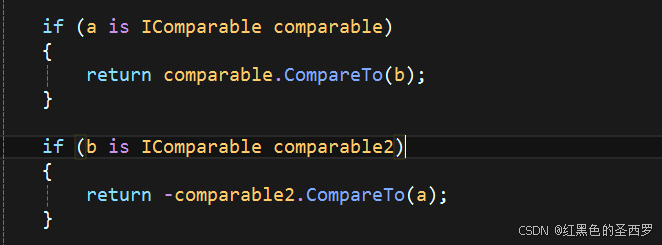 可以看到int实现了IComparable 的CompareTo方法,规则为小于返回-1,大于返回1,等于返回0,说明此时返回-1是升序,返回1是降序