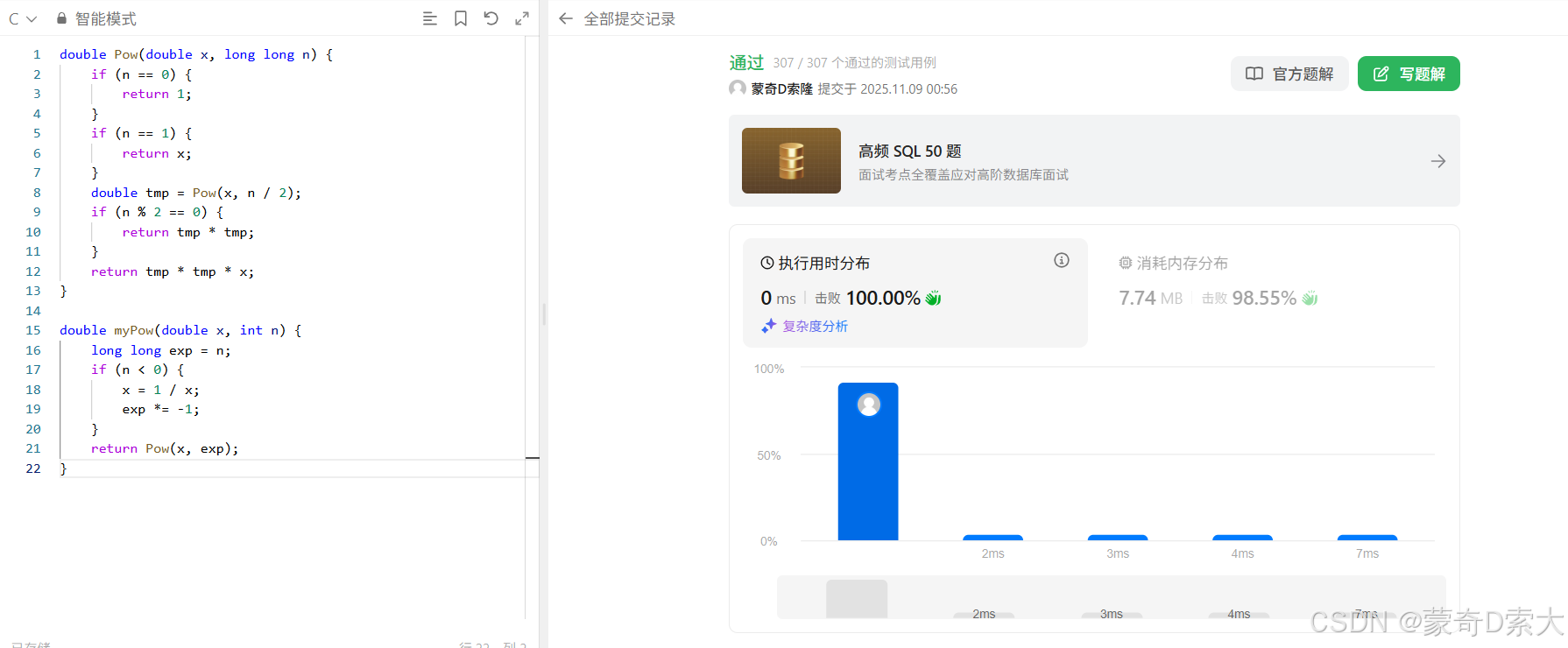 当我们面对LeetCode第50题《Pow(x, n)》时,朴素的迭代方法在指数范围达到 − 2 31 ≤ n ≤ 2 31 − 1 -2^{31} \leq n \leq 2^{31} - 1 −231≤n≤231−1 时会显得力不从心。