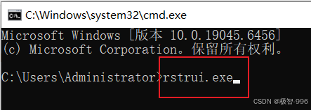 2、输命令 :在黑窗口里敲 "rstrui.exe "→按回车,之后跟着向导选还原点,完成还原;