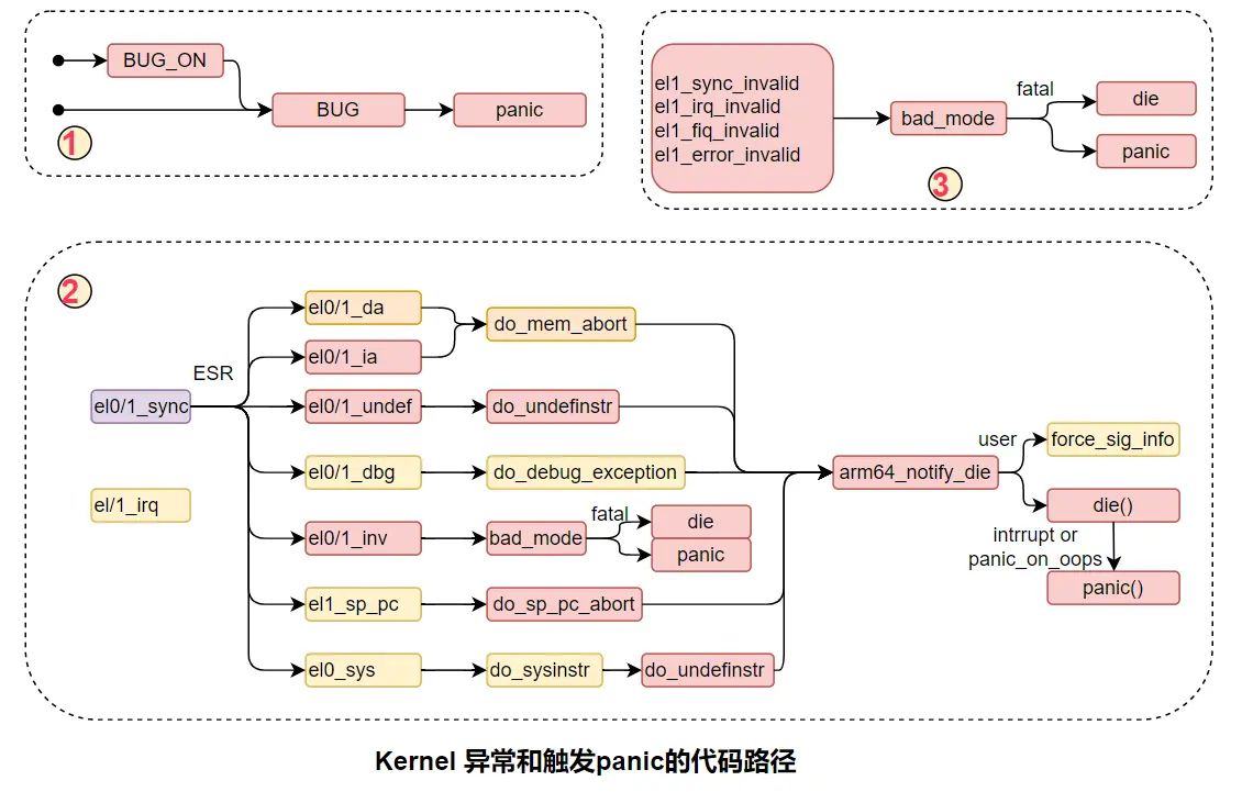 - kpanic 类异常均为 kernel 软件可感知到的异常, kernel 完成 panic 流程后会由 bl31 完成一次 WarmReset,所以所有 panic 现场我们都是能够拿到 pstore log 的。