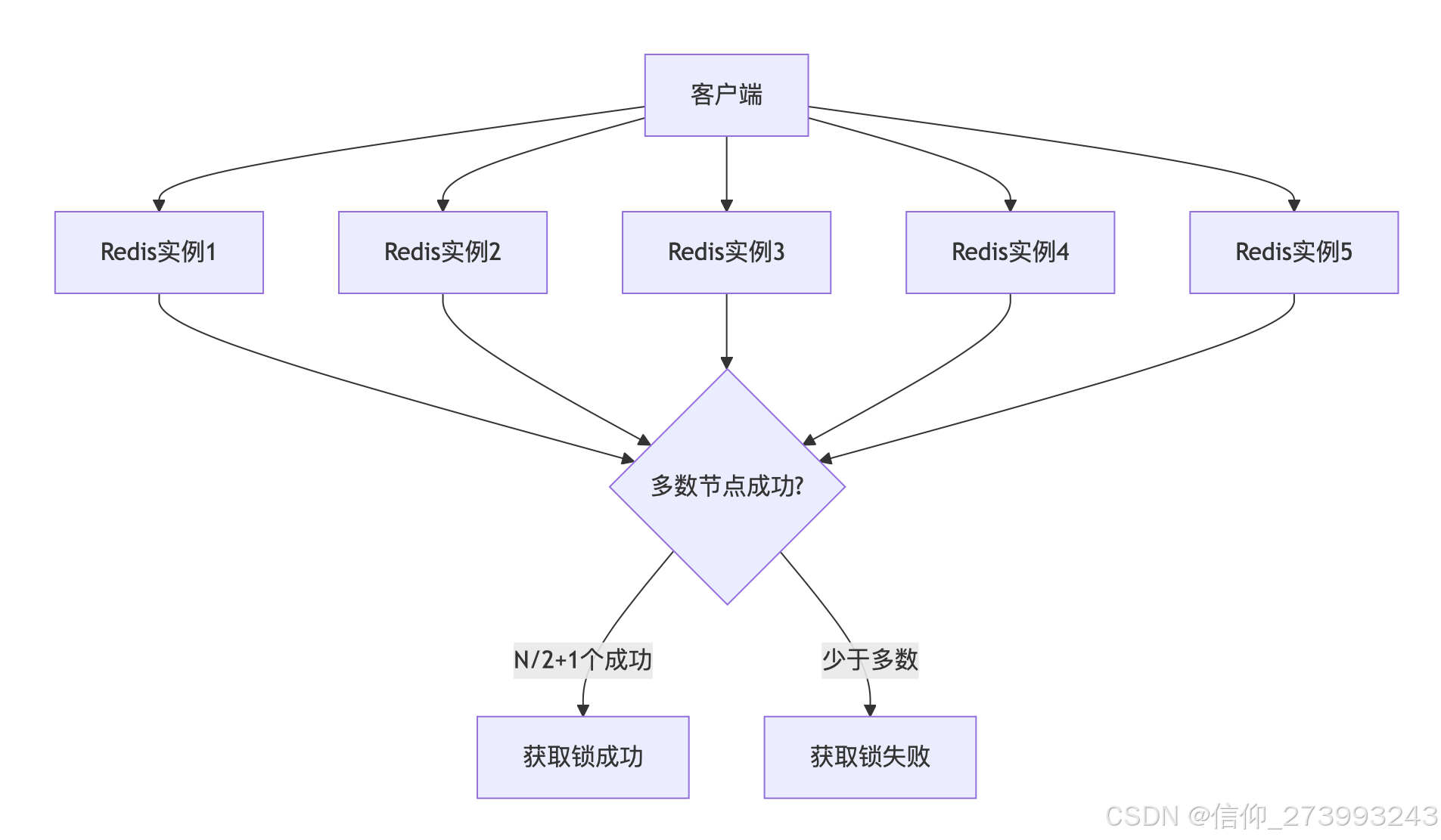 3、只要获取到了超过一半(例如 N=5 时为3个)实例的锁,就认为加锁成功。