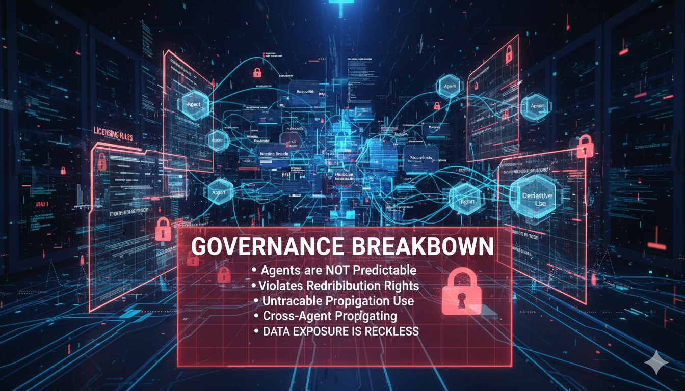 智能体会链式调用、生成衍生数据、合并数据源、缓存临时内容,甚至意外违反下游许可条款。MCP 本身并没有"智能体身份""用途追踪""衍生数据规则"等机制。