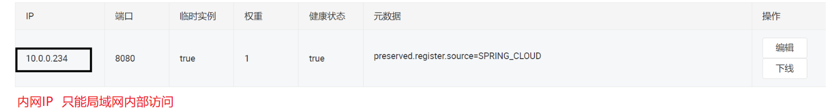 - Nacos 默认注册地址为内部局域网 IP,如果各个服务器不在一个局域网时,根据内网 IP 去访问,会出现内网不通,接口调用失败