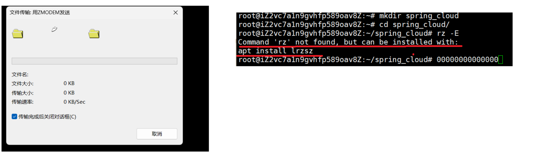 - 将 jar 包拖入 Linux 服务器时候,如果进度条一直没有变化,则需要先执行命令行:
