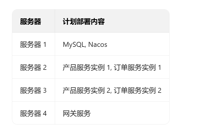 我们暂且把 MySQL 和 Nacos 网关服务部署为单例,产品服务和订单服务部署为多例。