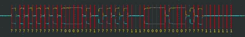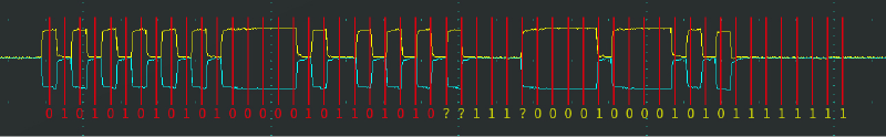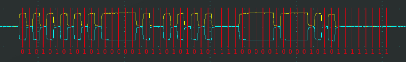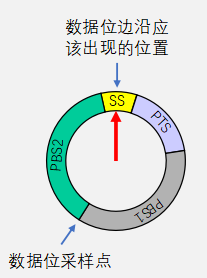 假设现在所有设备的秒表都是同步转动,有一个设备想作为发送方,开始一段波形,那么发送方,会在自己的秒表转到SS段时,开始一个新数据位,即发送方的每次数据跳变,都会等自己的秒表转到SS段时产生,这样接收方,内部也有一个秒表,并且它的秒表和发送方同步转动,所以接收方的秒表,每次转到SS段,接收方就知道一个新的数据位开始了,之后接收方直接在PBS1和PBS2之间数据采样因此,只要所有设备内部都要一个秒表,并且秒表保持同步转动,发送方在自己秒表的SS段,跳变数据,开始新的一位,接收方在自己秒表转到PBS1和PBS2之间时,采样数据,这样就能保证,接收方每次都采样到数据位的中间附近