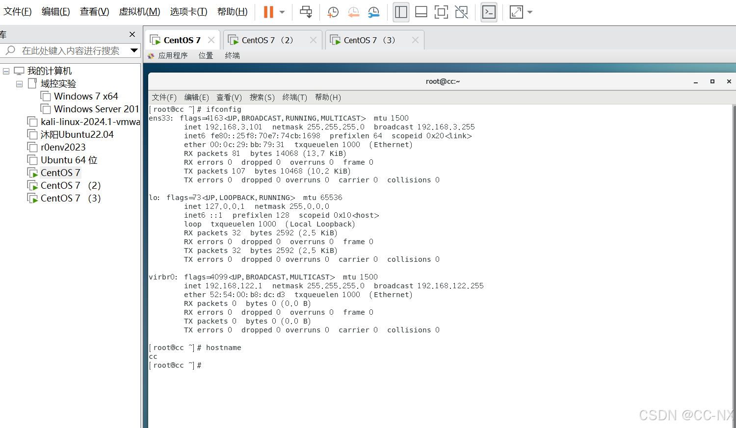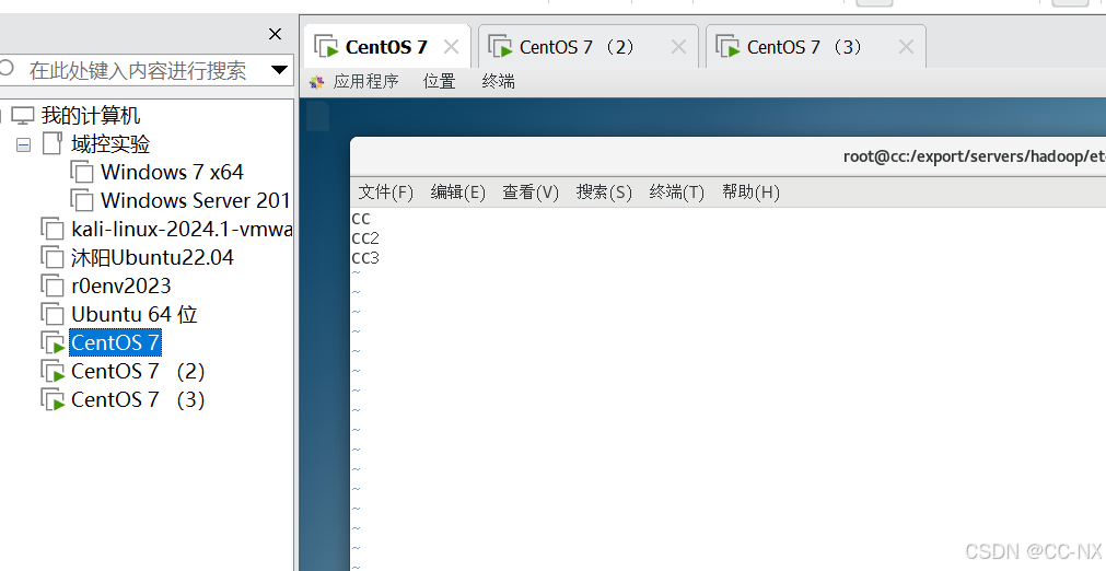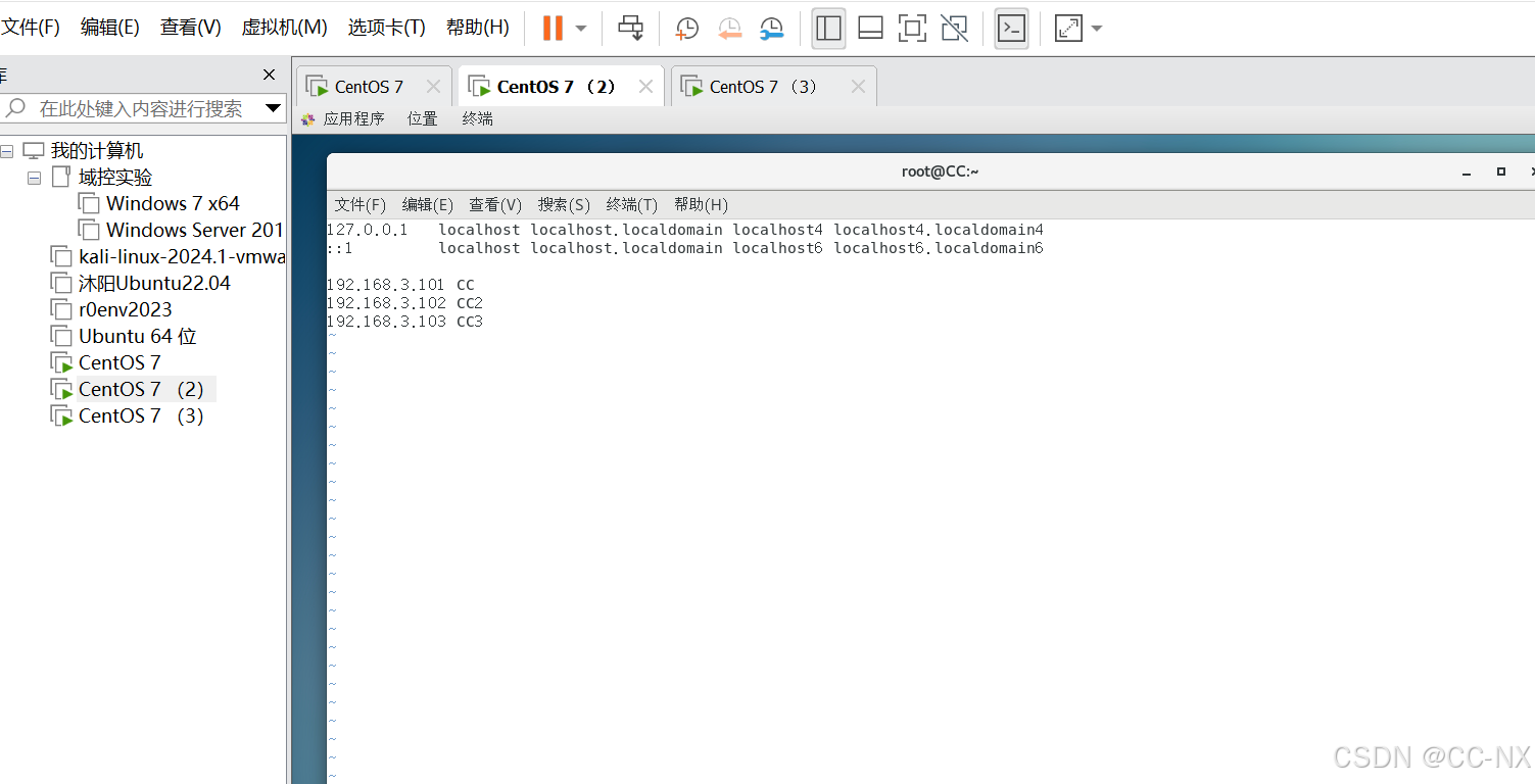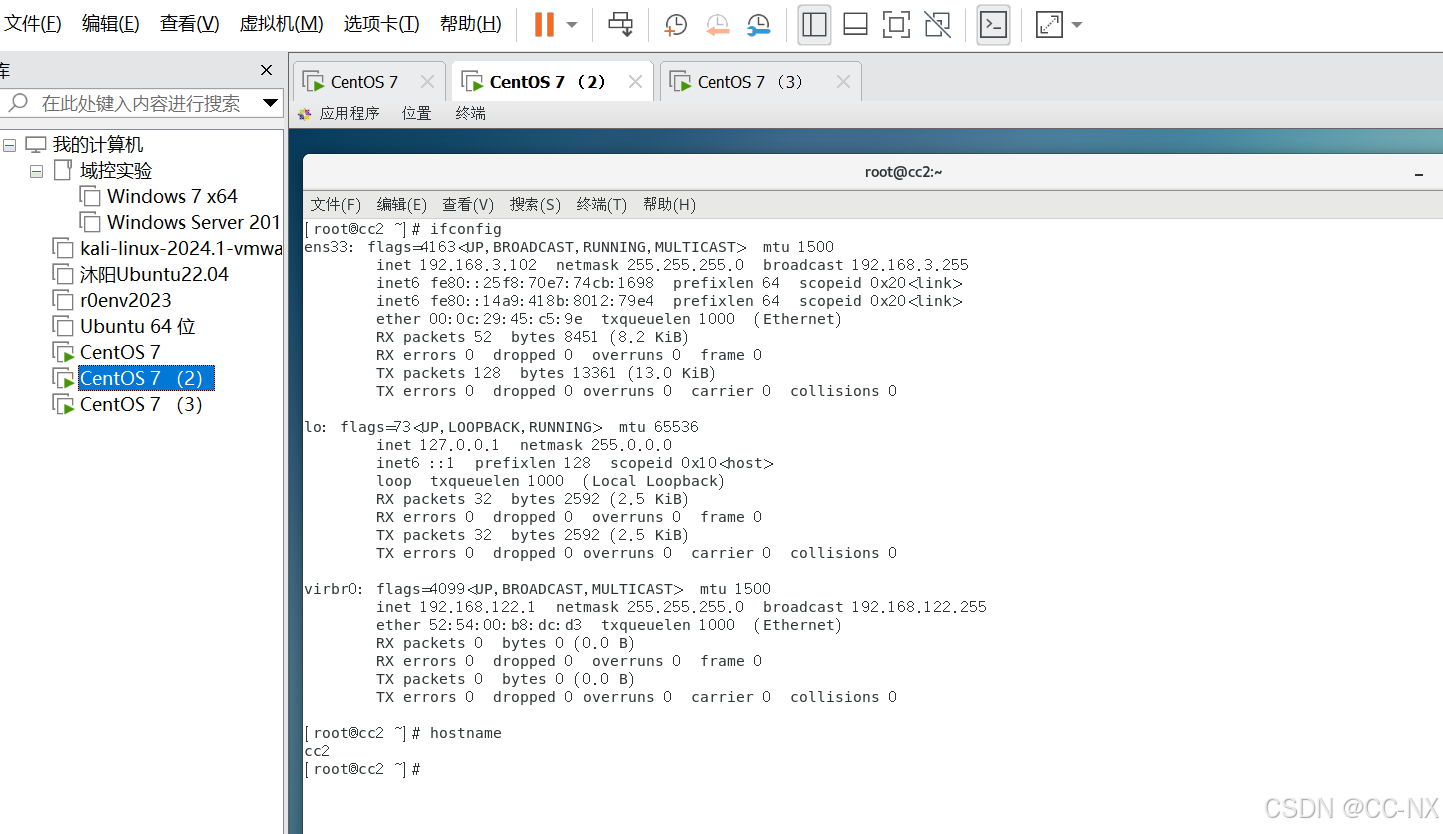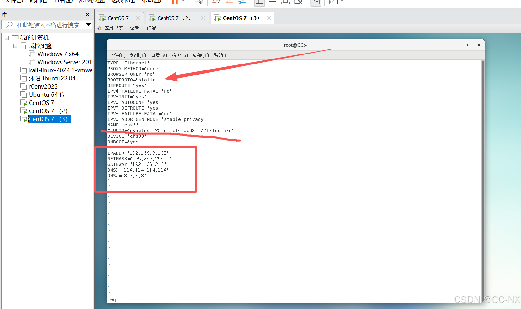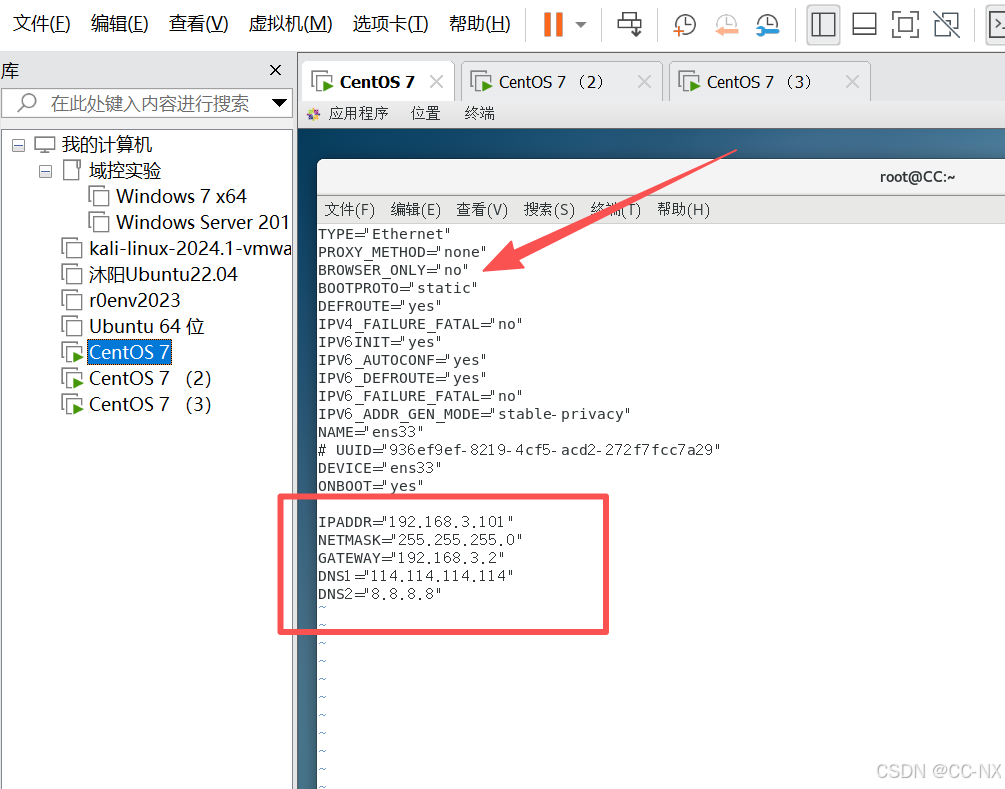 同上将配置CC2和CC3的网卡静态ip。