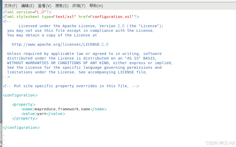 使用命令:vi mapred-site.xml进入文件进行添加内容: