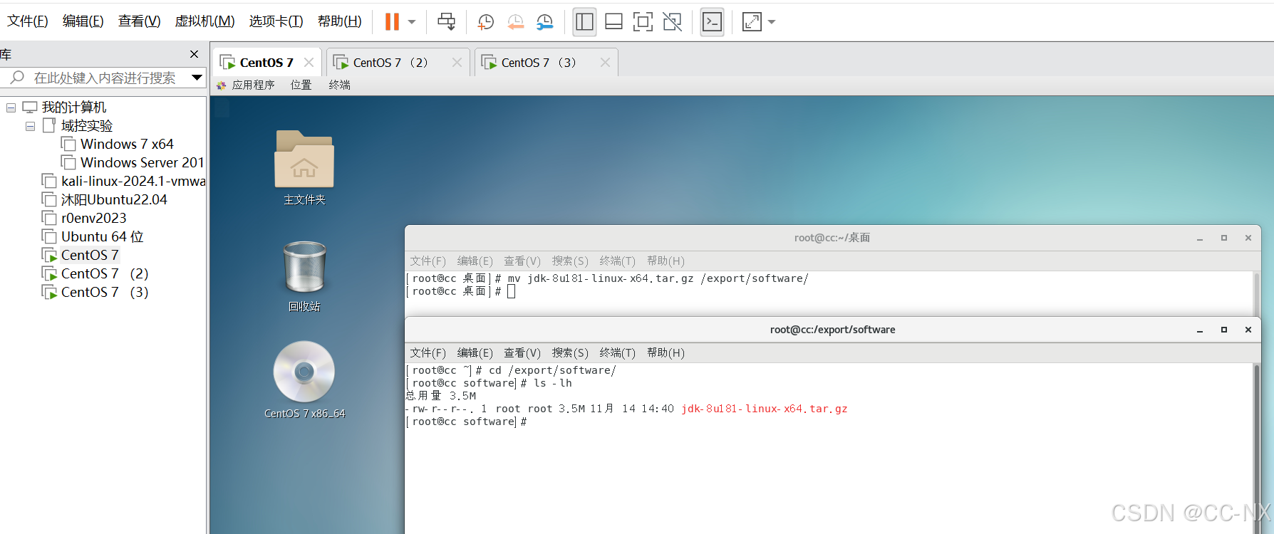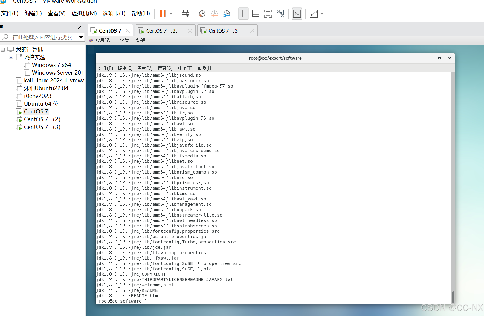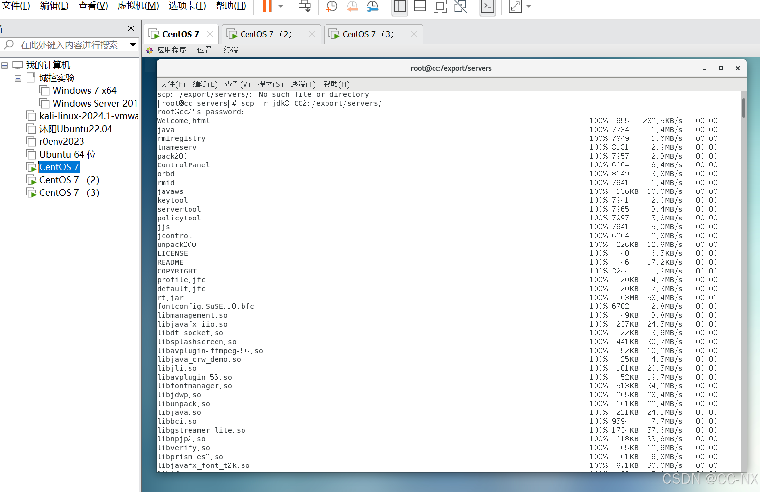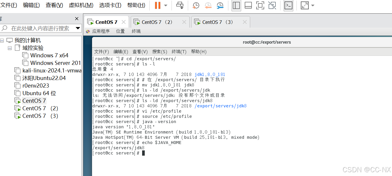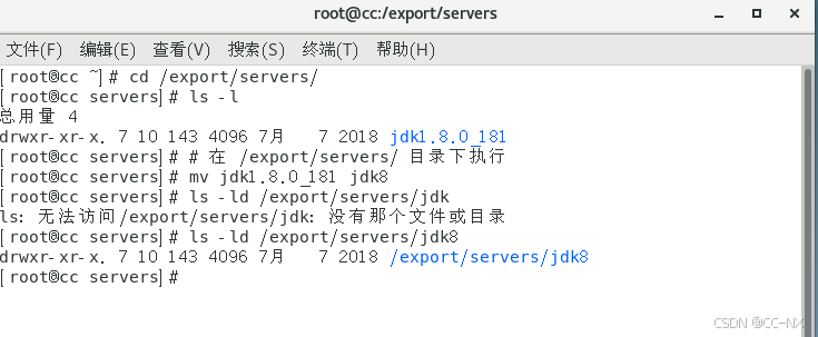 切换到jdk目录下,分别输入这两条命令: scp -r jdk8 CC2:/export/servers/