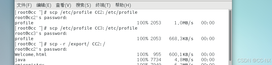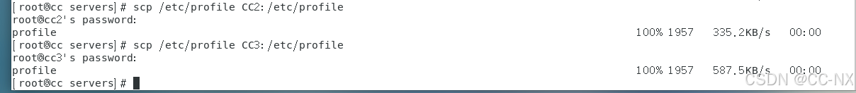 scp /etc/profile CC2:/etc/profile