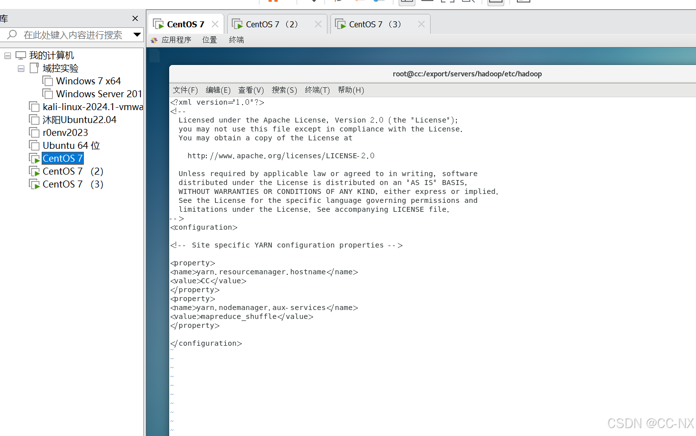命令:vi yarn-site.xml