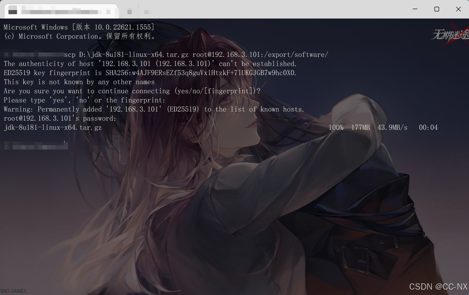 scp D:\jdk-8u181-linux-x64.tar.gz root@192.168.3.101:/export/software/
