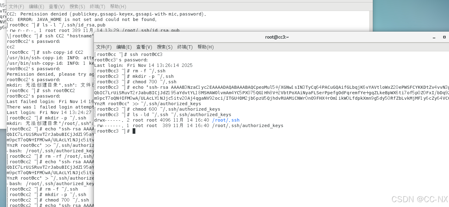 scp /root/.ssh/authorized_keys CC3:/root/.ssh