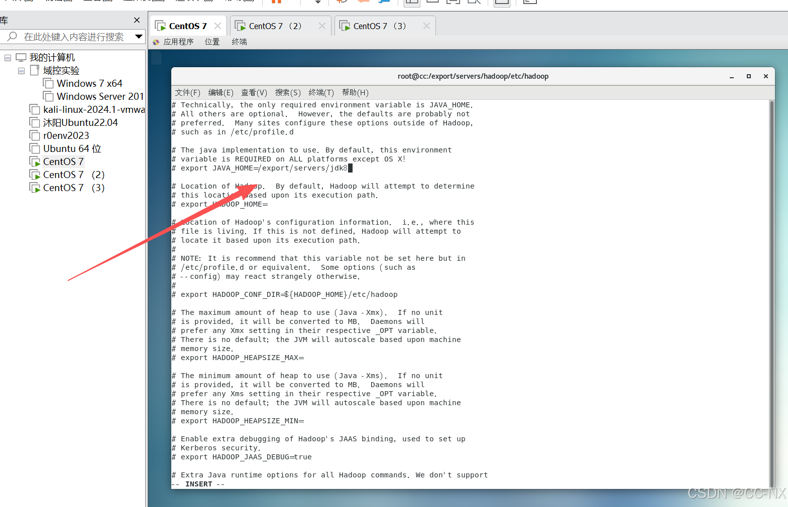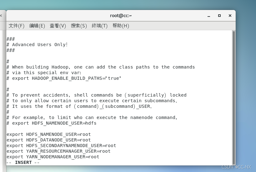输入命令:vi hadoop-env.sh